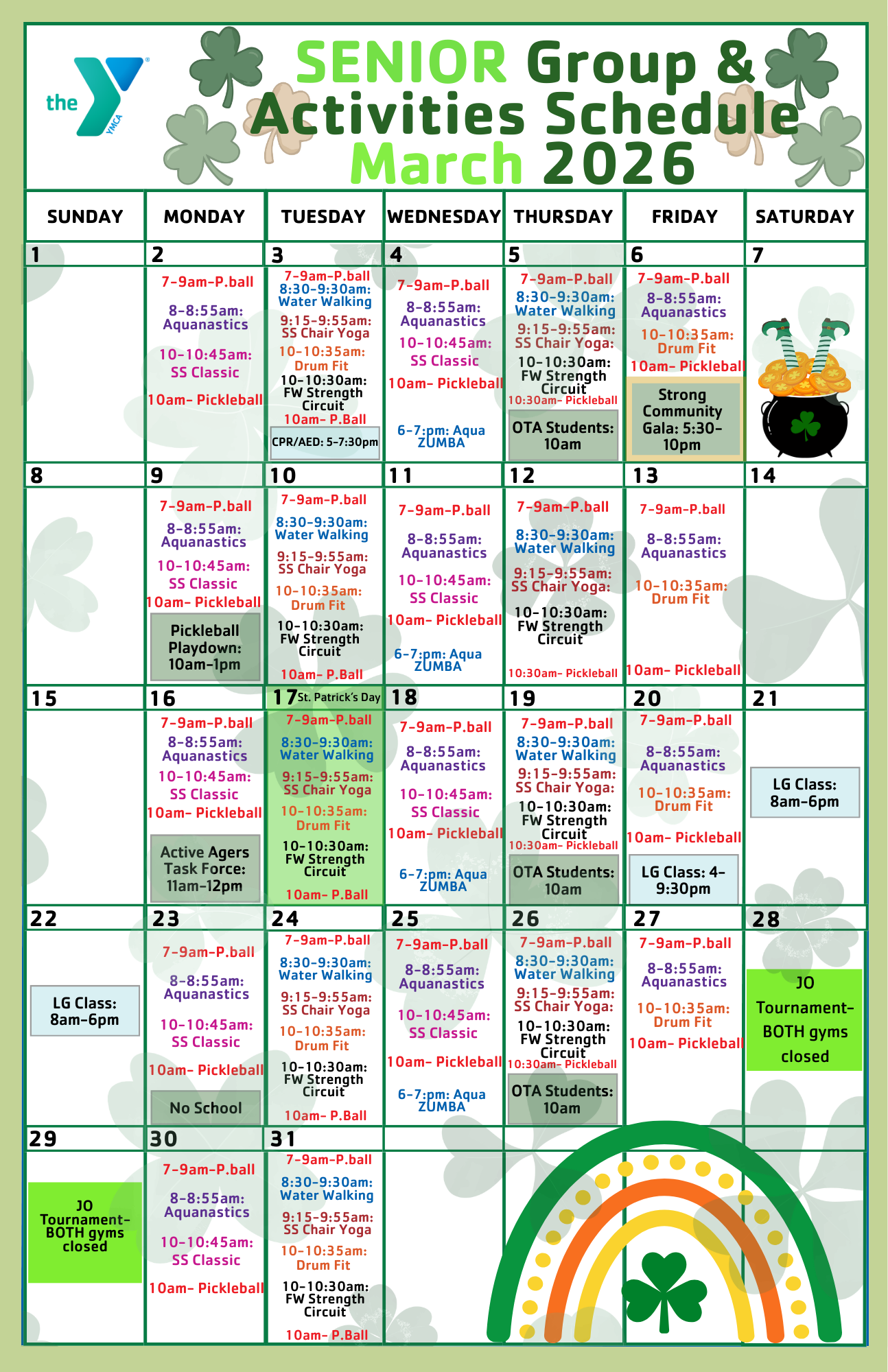View Our Calendar! Flyers of Schedules Available Here Indoor Pool ScheduleChild Watch ScheduleGroup Exercise Schedule January 2026Rock Wall ScheduleSenior Group & Activities Schedule January 2026